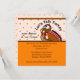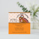 TOTALMENTE ADAPTABLE POR USTED pavo lindo del dibujo animado en fondo del lunar con el fondo anaranjado para el texto. Estas invitaciones del diseñador son totalmente adaptables por usted.