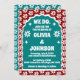 Nuestra mínima y audaz invitación a una boda al estilo retro es perfecta para la pareja de moda a la que le encanta destacar y hacer una declaración audaz. Nuestro diseño presenta un atrevido combinado de colores rojo y verde azulado con margarita boho. Las formas simples de arco ondulado abstracto crean un aspecto audaz con "We Do", que se muestra audazmente en el gran tipo de letra blanco. En el reverso se presenta un diseño moderno y sencillo con un anagrama atrevido y una dirección opcional de la página web del boda de la pareja.