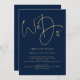 Invitación Hacemos Gold Script QR Código Naval Boda Azul Invi