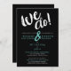 Celebra tu amor con nuestra joven y moderna invitación a la boda, diseñada para capturar la esencia de la elegancia contemporánea. Esta invitación irradia sofisticación y encanto con un llamativo "We Do" escrito a mano en negrita y blanco sobre un fondo negro de moda. Con toques de turquesa vibrante y blanco crujiente, añade un toque de color, manteniendo una estética limpia y minimalista. Personalizar los detalles del RSVP en la parte trasera monocroma elegante, asegurando que cada aspecto de su invitación a la boda refleje su estilo y personalidad únicos. Ya sea que prefiera el encanto eterno de la impresión o la comodidad de los formatos digitales, nuestra invitación ofrece ambas opciones para adaptarse a sus preferencias.