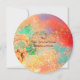 Colorida, caprichosa hada sentada en una flor roja en destellos dorados y colores vibrantes. Pintura acrílica con lámina dorada y plateada con colores iridiscentes.