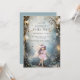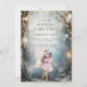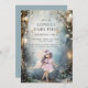 Una mágica invitación al primer cumpleaños con temática de hada para el fiesta de primer cumpleaños de una niña, con un entorno forestal encantado en el bosque con brillantes luces colgantes, y un hada en un camino arbolado. Disponible en versión impresa, como descarga digital para enviar por teléfono, o ambos.
