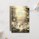 Una mágica invitación al primer cumpleaños con temática de hada para el fiesta de primer cumpleaños de una niña, con un entorno forestal encantado en el bosque con flores, luz brillante y un hada en un camino arbolado. Disponible en forma impresa, como descarga digital, o ambos.