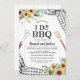 Invite a los huéspedes a una ducha con temática de barbacoa o a una cena de ensayo informal para celebrar a la pareja feliz. En esta invitación destacan los girasoles acuáticos con acentos de gingham en blanco y negro sobre un fondo rústico de ciénaga.