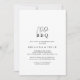 Esta moderna y elegante invitación a la fiesta de compromiso "I Do" es perfecta para una fiesta de compromiso rústico, cena de ensayo, ducha de pareja, después de fiesta o cualquier evento de boda. El diseño, sencillo y elegante, presenta una tipografía de escritura clásica y elegante en blanco y negro.