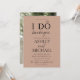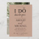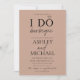 Esta hermosa y moderna invitación a la fiesta de compromiso de duchas de las parejas I Do Barbeque es un diseño de color marrón de moda que presenta la "O" de "I DO" con un diamante, para hacer un anillo, y tipografía de escritura moderna con letras a mano para la barbacoa y otros textos. En la parte posterior de la tarjeta aparece tu foto favorita de compromiso. Contacte con el diseñador para encontrar productos coincidentes o variaciones de productos. Copyright Elegant Invita, todos los derechos reservados.