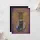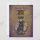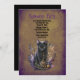 Cualquier buena bruja la tiene familiar y a menudo es un gato negro. Una exquisita representación de un gato negro en un ambiente brujo sobre un fondo rústico y envejecido es el toque perfecto para esta invitación a la fiesta de Halloween. Toda la información que sus huéspedes necesitarán puede ser personalizada para satisfacer sus necesidades. La parte trasera de esta invitación es negra con una imagen de tres botellas de poción brujas.