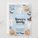 Halloween Blue Fourever Spooky 4th Birthday Invitation Cute Halloween con la invitación de cuatro cumpleaños de un niño con tres fantasmas, calabazas, murciélagos, caramelos, telaraña y más con un fondo azul. Esta invitación de cumpleaños para niños con temática de Halloween es ideal para una fiesta de cumpleaños en octubre.