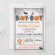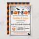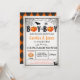 Pequeños mellizos de calabaza de Halloween casados con una invitación a la ducha de bebé con alegres diseños.
