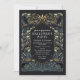 Diseño elegante y gótico con cuervos y follaje. Este diseño presenta un fondo negro, con barrancos azules oscuros y hojas verdes mudas con acentos dorados.