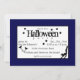 El dicho "Bebe brujas" con una bruja en una escoba con un gato y un martini sobre una luna naranja llena de nubes.