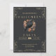 Esta invitación a la fiesta de Halloween respira un aura de misterio y elegancia, con un diseño cautivador contra un fondo de negro profundo. La parte delantera está decorada con elegantes bordes dorados y una escritura que le dan un toque de sofisticación al diseño. En el centro, un impresionante cuervo negro ocupa el centro del escenario, rodeado por un hermoso arreglo de flores doradas y negras. Este encantador motivo capta la esencia de Halloween, prometiendo una noche de intriga y emoción. La combinación de colores negros, dorados y toques de flores negras crea una impresionante y sofisticada paleta perfecta para una celebración de Halloween. El cuervo negro, un símbolo clásico de Halloween y misterio, añade un sentido de presentimiento a la invitación, mientras que el oro y las flores negras le dan un toque de elegancia y belleza. Juntos, estos elementos crean un diseño que es a la vez llamativo y elegante, y que prepara el escenario para una memorable fiesta de Halloween. El fondo de la invitación sigue la temática con su elegante fondo negro, asegurando un aspecto cohesivo y elegante. Ya sea que estés organizando un sofisticado baile de máscaras o un espeluznante fiesta de la casa, esta invitación seguramente marcará el tono perfecto para tu celebración de Halloween. Invite a sus invitados a unirse a usted para una noche de misterio y encanto con esta impresionante invitación a la fiesta de Halloween.