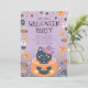 Nuestra invitación a la fiesta de Halloween presenta un diseño caprichoso mostrando a un gatito juguetón enclavado en una calabaza tallada, capturando perfectamente el espíritu festivo de la temporada. Los colores vivos y el ilustracion encantador crean un ambiente acogedor, lo que lo convierte en una elección ideal para invitar a amigos y familiares a su celebración de Halloween. Con un amplio espacio para los detalles del evento, esta invitación combina creatividad y practicidad, asegurando que su reunión sea memorable y bien atendida.