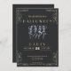 Disfrute de una vibrante y espeluznante celebración de Halloween con esta moderna invitación a la fiesta con temática de pizarra. El fondo negro de pizarra crea un ambiente llamativo y sobrio, mientras que las elegantes rocas de cada rincón aportan un toque de refinamiento. El sencillo texto dorado se destaca en el oscuro fondo, asegurando que los detalles de tu evento sean a la vez elegantes y fáciles de leer. En el centro del diseño, cuatro esqueletos bailarines de color verde y púrpura atraen la atención, lo que da un giro muy animado a las imágenes clásicas de Halloween. Los colores audaces y contrastantes de los esqueletos aportan una energía emocionante y divertida, haciendo que la invitación se sienta dinámica y llena de vida. Estas figuras lúdicas seguro captarán la atención de tus invitados y marcarán el tono para una noche de parranda de Halloween. La parte trasera de la invitación continúa con el elegante tema negro del pizarrón, manteniendo una mirada cohesiva y pulida por todas partes. Con su perfecto equilibrio de encanto espeluznante y diseño moderno, esta invitación hará que sus huéspedes se sientan cómodos para una noche llena de emociones, bailes y diversión de Halloween.