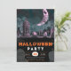 ¡Prepárense para una celebración de tingling con esta invitación a la fiesta de Halloween! En la parte superior del diseño hay un espeluznante cementerio envuelto en un espeluznante resplandor de una gran luna creciente. El cielo gris de arriba está salpicado de estrellas y murciélagos a la deriva, creando una escena escalofriante y atmosférica que captura perfectamente la esencia de la noche de Halloween. Pasando a la mitad inferior, la invitación pasa a un fondo negro profundo adornado con murciélagos grises, intrincadas telarañas y solemnes marcadores de tumbas. Los detalles del evento se muestran de manera destacada en un texto impactante en naranja y blanco, resaltado por una calabaza blanca que muestra la fecha de tus festividades inquietantes con brillantes números naranjas. El fondo de la invitación continúa con el tema de Halloween con un fondo negro a juego, decorado con una variedad de murciélagos grises, apariciones fantasmales, marcadores de tumbas, lámparas jack-o', telarañas y calaveras amenazantes. Este diseño lúdico pero espeluznante asegura que cada centímetro de la invitación refleja la emoción y diversión de tu fiesta de Halloween. Esta invitación combina el diseño moderno con elementos clásicos de Halloween, lo que lo convierte en la elección perfecta para poner el ambiente para una noche de diversión. Su diseño único y acogedor hará que sus huéspedes se sientan encantados y los hará esperar con ansiedad su celebración espeluznante.