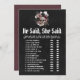 Añade un toque de diversión espeluznante a tu ducha de novias con este juego de "He Said, She Said", perfecto para una celebración temática de Halloween. Con un elegante diseño de cráneo floral, esta tarjeta de juego combina el encanto gótico con el capricho de las novias, convirtiéndolo en una pieza destacada para su evento. A los invitados les encantará adivinar quién dijo qué —la novia o el novio— en este entretenido juego interactivo. El diseño es sobrio y sofisticado, lo que crea el ambiente perfecto para tu ducha de novia de Halloween, asegurando que todo el mundo se divierta con miedo. Ya sea que te reúnas en persona o virtualmente, este juego seguro que será un éxito y una parte memorable de tu celebración. 💀 👰 ♂️