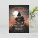 Una audaz invitación de Halloween con una mansión gótica acechada bajo un cielo rojo sangre —perfecta para crear un emocionante ánimo fiesta. (Obra de arte generada por IA)