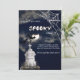 ¡Prepárate para una noche de diversión! Esta espeluznante invitación a la fiesta de Halloween incluye unos bates voladores espeluznantes que se disparan a través de un polvoriento cielo nocturno cubierto de nubes, la manera perfecta de marcar el tono de tu fantasmagórica reunión. Ya sea que estés organizando una fiesta de canto de disfraces, un evento de casa embrujado o una fiesta de postre truco o truco, este diseño oscuro y monótono añade el toque correcto de espanto. Personalice los detalles de su fiesta e invite a sus huéspedes a una celebración escalofriante que no olvidarán.