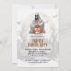Crea una invitación única a una fiesta de tallado de calabaza con un fantasma de la skeleton acuática con lámparas de jack-o-langoles y murciélagos en el frente y una calabaza de Halloween con un gorra morado en la parte trasera.