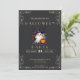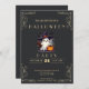Invite a sus huéspedes a una mágica y encantadora celebración de Halloween con esta divertida y moderna invitación a la fiesta con temas de pizarra. El fondo negro de la pizarra crea un ambiente espeluznante y elegante, mientras que el delicado desplazamiento en los cuatro rincones aporta un toque de sofisticación. El sencillo texto dorado destaca de manera excelente, haciendo que sus detalles del evento sean claros y elegantes. En el centro del diseño hay un fantasma adorable, con un gorra de mago y un libro mágico, que prepara el escenario para una noche llena de hechizos y misterios. El fantasma está rodeado de murciélagos vacilantes, estrellas brillantes y una brillante linterna jack-o', creando una escena de Halloween captada por el espíritu de la diversión y la magia. La parte trasera de la invitación sigue la tónica negra de la pizarra, con un aspecto pulido y cohesivo. Esta invitación combina perfectamente el encanto de Halloween con un toque místico, asegurando que tus invitados estén entusiasmados por una noche de magia espeluznante, diversión y sorpresas.