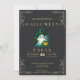 Invite a sus huéspedes a una mágica y encantadora celebración de Halloween con esta divertida y moderna invitación a la fiesta con temas de pizarra. El fondo negro de la pizarra crea un ambiente espeluznante y elegante, mientras que el delicado desplazamiento en los cuatro rincones aporta un toque de sofisticación. El sencillo texto dorado destaca de manera excelente, haciendo que sus detalles del evento sean claros y elegantes. En el centro del diseño hay un fantasma adorable, con un gorra de mago y un libro mágico, que prepara el escenario para una noche llena de hechizos y misterios. El fantasma está rodeado de murciélagos vacilantes, estrellas brillantes y una brillante linterna jack-o', creando una escena de Halloween captada por el espíritu de la diversión y la magia. La parte trasera de la invitación sigue la tónica negra de la pizarra, con un aspecto pulido y cohesivo. Esta invitación combina perfectamente el encanto de Halloween con un toque místico, asegurando que tus invitados estén entusiasmados por una noche de magia espeluznante, diversión y sorpresas.