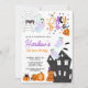Fiesta Halloween púrpura, negra y Naranja Hey Boo con Ghost y una invitación al cumpleaños de la casa embrujada