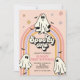 ¡Escandaloso! Invitación a la fiesta de cumpleaños de Ghost Hippie Halloween. Spooktacular segunda invitación bash de cumpleaños con fantasmas retro, flores y murciélagos.