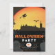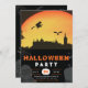 Invitación Halloween negro de la ciudad de la bruja de la lun