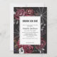 Establezca el escenario para una celebración asombrosamente bella con nuestra Invitación a la ducha de novia floral gótica "Novia o Muerte" de Halloween. Perfecto para los futuros novios, esta invitación combina la elegancia oscura con un toque divertido y espeluznante. El diseño presenta acentos góticos florales, ricos tonos negros y toques de morado profundo y rojos, lo que crea una atmósfera dramática y misteriosa. La audaz frase "Novia o Muerte" está escrita en un llamativo guión gótico, lo que hace de esta invitación la elección perfecta para duchas de novias, fiestas de soltera o bodas con una estética oscura y romántica. Esta invitación única emocionará a los invitados y marcará el tono para una inolvidable celebración de novias.