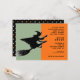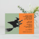 La creativa casa abierta de la fiesta de Halloween ofrece una silueta de bruja voladora y divertida línea.