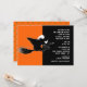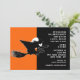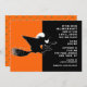 Creative Halloween party open house invites featuring a flying witch silhouette and funny line.