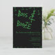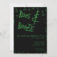 This Boos and Booze Halloween party invitation features green typography pattern on a black background. Perfect for adults hosting a spooky, fun-filled Halloween night with friends, drinks, and festive vibes.