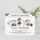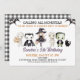 Invitación de cumpleaños de Halloween con disfraces de Chica de Invitación de Halloween con temas de Halloween presentando una fila de personajes de Halloween. Esta invitación de cumpleaños de Halloween también incluye algunas telarañas y es ideal para un fiesta de disfraces de cumpleaños de Halloween para niños.