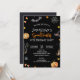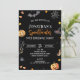 Invitación a una fiesta de cumpleaños Spook-tacular con elementos de Halloween en negro y naranja - un diseño perfecto para celebrar la ocasión.