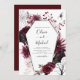 Halloween 31 de octubre otoño color de agua oscuro color borgoña Invitaciones a la boda sobre el fondo negro - incluye tipografía de escritura aterradora y escalofriante y elegante con flores modernas y alas murciélago para la celebración especial del Día de la Boda Aterradora.