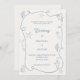 Invitación Hand drawn coastal beach dusty blue ivory wedding