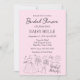 Invitación Hand Drawn Doodle Bridal Shower Pink
