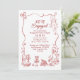 The retro-inspired burgundy red doodles and lighthearted vibe reflect the couple’s unique spirit — fun, sweet, and ready to celebrate. This invite is all about great food, better company, and kicking off the road to “I do” with a toast and a happy dance. Cheers to love, laughter, and doodles!