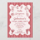 Featuring hand-drawn illustrations of Italian favorites—pasta, wine, martinis, wine bottles, lemons, olives, tomatoes, and grapes on the vine—this design brings a warm, European-inspired charm to your celebration. The modern red and pink striped background paired with a whimsical squiggle doodle frame adds a fun, trendy touch that feels effortless, inviting, and Instagram-ready.