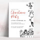 Sumérjase en el espíritu de las vacaciones con esta divertida invitación a la fiesta de Navidades con doodles dibujados a mano en negro de una mesa de regalos, champán, copas de vino y mistletoe puestos a la derecha de la invitación. Una manera divertida y moderna de invitar a amigos y familiares a una noche festiva de bebidas, risas y víveres.