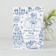 Blue and White Hand Drawn Squiggle Doodles Christmas Party Invitation.
