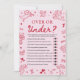 Bring extra fun and laughter to your Valentine-themed baby shower with this Hand Drawn Valentine Over or Under Game! Designed in a charming pink-and-red coquette style, this game features whimsical hand-drawn hearts, bows, cupids, florals, and playful doodles from the Love Is In The Air collection.