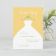 An invitation to the bride and her bridesmaids for a bridal party get-together featuring a hanging wedding dress design. Soft, minimal, and fully customizable, it’s perfect for a pre-wedding celebration. In mimosa orange, white, and mint green, or it can be customized to your wedding color palette or party theme colors.