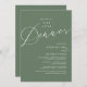 Mark the beginning of your forever with elegance using our romantic contemporary sage green theme, wedding elopement celebration invitation card, "Happily Ever After Dinner". Perfect for couples extending their joyous occasion, this invitation exudes sophistication with a hint of playfulness, setting the stage for a memorable event. Adorned with a timeless modern script design theme, it adds a touch of refined charm to your festivities. Crafted by TeeshaDerrick, this invitation promises to beautifully capture your love story.