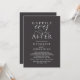Elegantly announce your happily ever after with our modern charcoal grey theme, modern classy and elegant wedding reception celebration invitation card, "Happily Ever After", hors d'oeuvres, drinks, dessert, and dancing after the wedding ceremony. Tailored for couples continuing their love story, this invitation strikes a perfect balance of sophistication and charm, setting the scene for an unforgettable event. Featuring a modern contemporary script design, it adds a touch of timeless grace to your special day. Designed by the talented TeeshaDerrick, this invitation is a stylish expression of your enduring love.