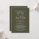 Elegantly announce your happily ever after with our modern olive green theme, modern classy and elegant wedding reception celebration invitation card, "Happily Ever After", hors d'oeuvres, drinks, dessert, and dancing after the wedding ceremony. Tailored for couples continuing their love story, this invitation strikes a perfect balance of sophistication and charm, setting the scene for an unforgettable event. Featuring a modern contemporary script design, it adds a touch of timeless grace to your special day. Designed by the talented TeeshaDerrick, this invitation is a stylish expression of your enduring love.