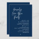 Design Highlights, Modern minimalist aesthetic with casual typography and flowing script, “Happily ever after party” headline sets a dreamy, timeless tone, Clean layout with ample space for all essential details (date, time, venue, RSVP info) and Crisp white text on navy blue background — classic, chic, and effortlessly elegant. Perfect for Intimate wedding dinners, post-wedding celebrations with family and close friends and Couples who love modern calligraphy and understated luxury. Fully customisable on Zazzle — personalize names, dates, locations, and even add your own colors or fonts. Print as flat cards, folded invitations, or digital downloads. Let your guests know this is more than just dinner — it’s the night celebrating our forever. Order now and set the tone for an unforgettable celebration!