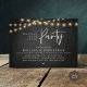 Woth joyius hearts, announce and share your happily ever after in style with our modern rustic string lights, grey cottage chalkboard theme design "Happily ever after party" wedding elopement or reception dinner and dancing celebration invitation card. It is ideal for couples who have decided to celebrate their best day. With its sophisticated yet playful design, this invitation is sure to set the tone for an unforgettable event. The invitation card features a modern and minimalist script design theme, adding a touch of timeless elegance to your celebration. Designed by TeeshaDerrick