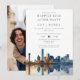 This elegant happily ever after party Dallas skyline watercolor wedding invitation can be personalized with your information in chic typography and special photo on the reverse. Designed by Thisisnotme©