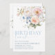 Esta invitación de cumpleaños presenta un diseño floral de color agua suave. El encabezado del guión es una imagen que no se puede editar. El resto del texto es totalmente editable. Para una personalización más avanzada de este diseño, simplemente seleccione el botón "Personalizar" de arriba.